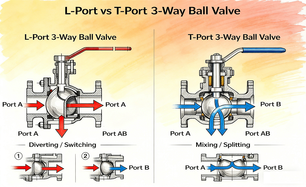 Unlike standard two-way valves that simply start or stop flow along a single path, three-way ball valves introduce a third port—unlocking advanced operations such as flow diversion, stream mixing, and multi-directional distribution. However, selecting the wrong configuration can lead to inefficiencies, system downtime, or even equipment damage. This expanded guide provides a detailed comparison of L-port and T-port designs, their flow behaviors, and real-world application scenarios.