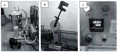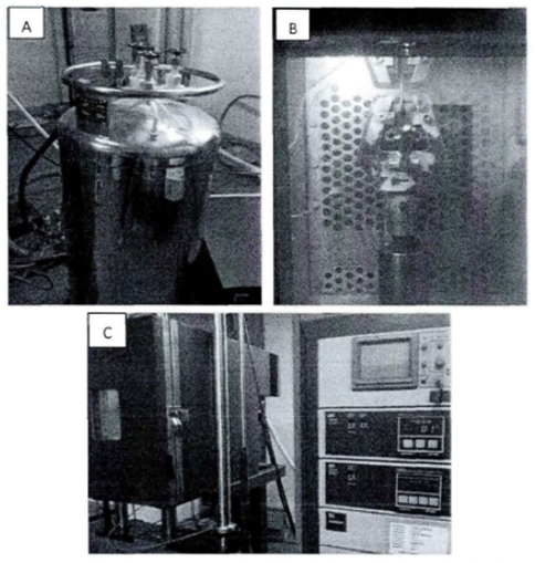 Figure 2 Low-temperature stretching equipment: (A) Liquid nitrogen cooling devices (B) Environmental chambers (C) Temperature control systems
