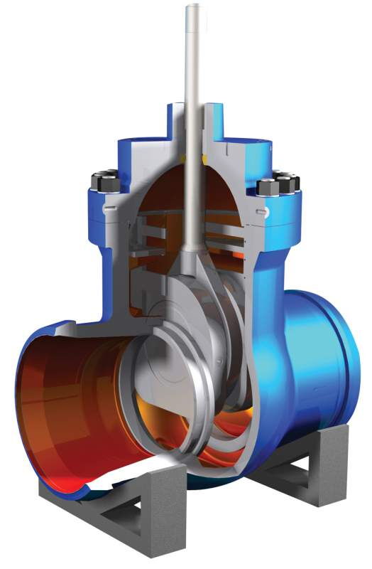 The body, which houses parallel gate discs, is made of carbon steel, stainless steel, etc. and is cast or forged. Sealing is improved by the dual-disc design. Flow is controlled by vertical disc movement.